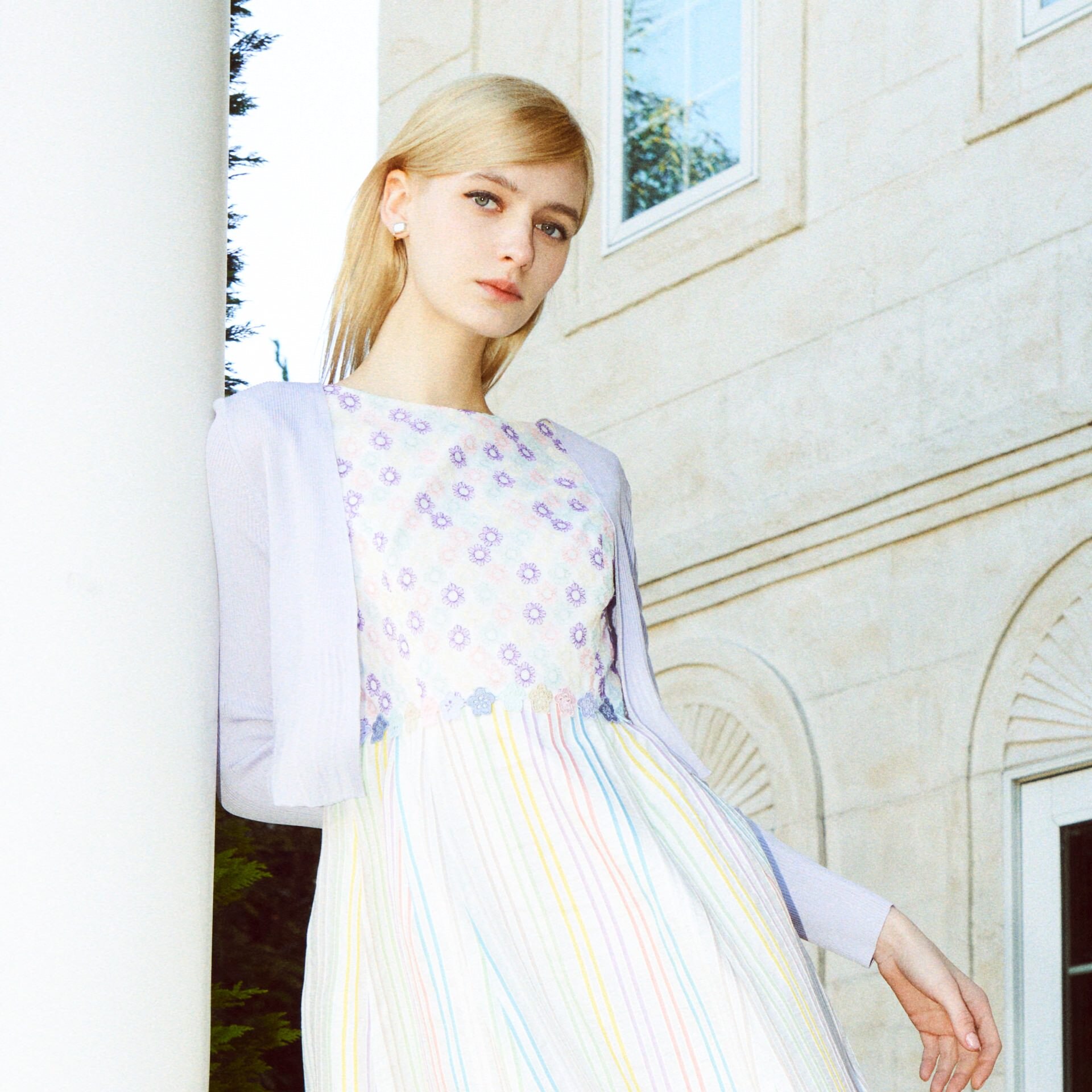 愛らしい姿を表現しました。ストライプ部分、刺繍、レースと