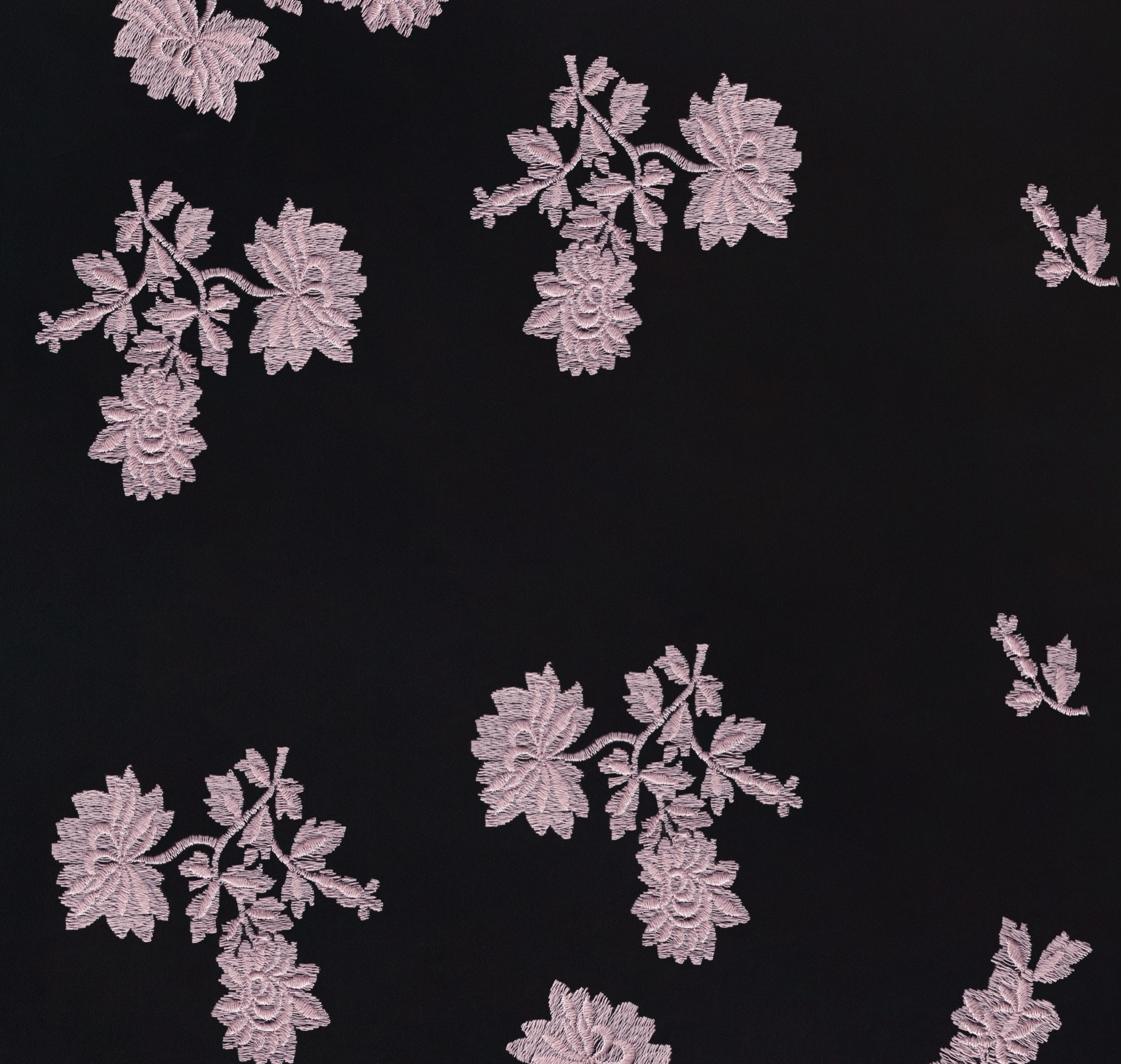 60年代をイメージしたハッピーな幾何柄にクリサンセマムの花を刺繍したドレス。黒を締め色として、可憐さの中にきりっとした大人っぽさを表現しています。NY時代から今も愛されるTOCCAの代表的なファブリックのひとつです。