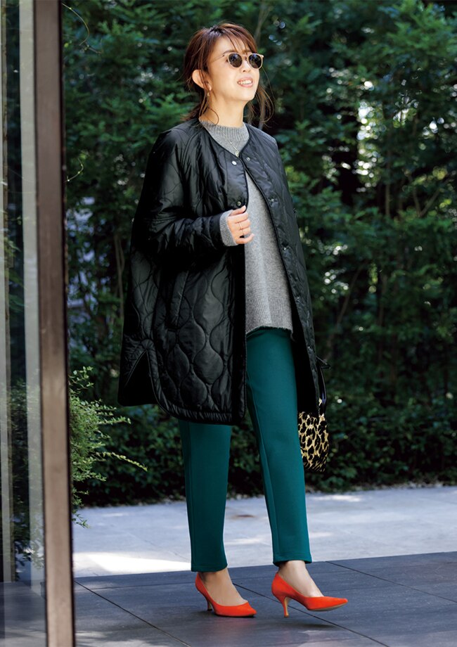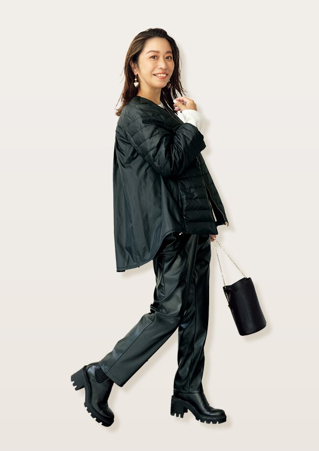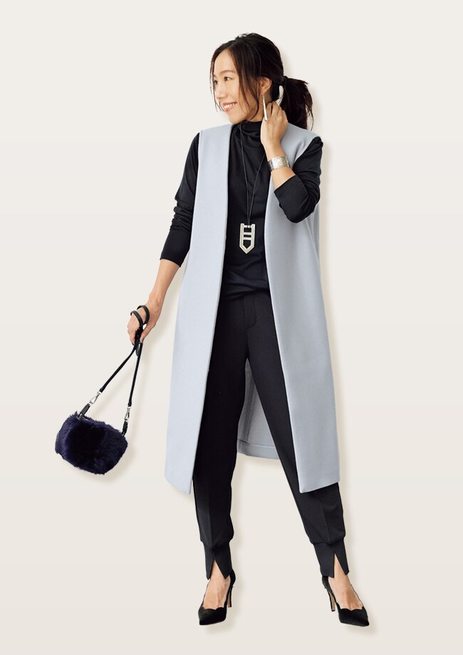 ほんのり甘く、ほんのりモードなデザインはデイリーに使いやすい1着。コートインにも使える薄軽仕様なので、秋口から真冬まで活躍します。 バック、靴、小物/スタイリスト私物