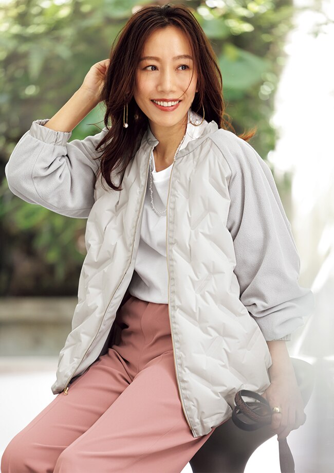 エアーを入れるとダウンライクな凹凸が表情感のある装いに。パンツにもスカートにも合わせやすいリバーシブルで着こなしの幅がさらに広がります。 バック、靴、小物/スタイリスト私物