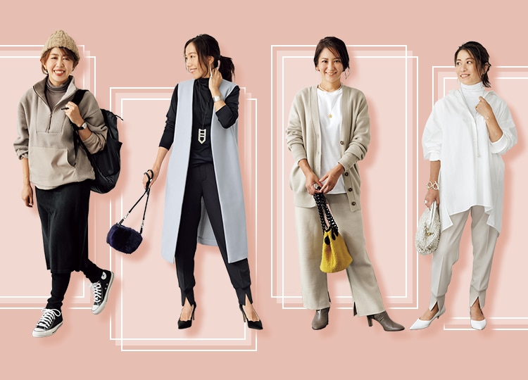 - 「きちんと見えリラックスパンツは出入りの多いママたちの強い味方。足元で着こなしを変えられる点も良いですね。」