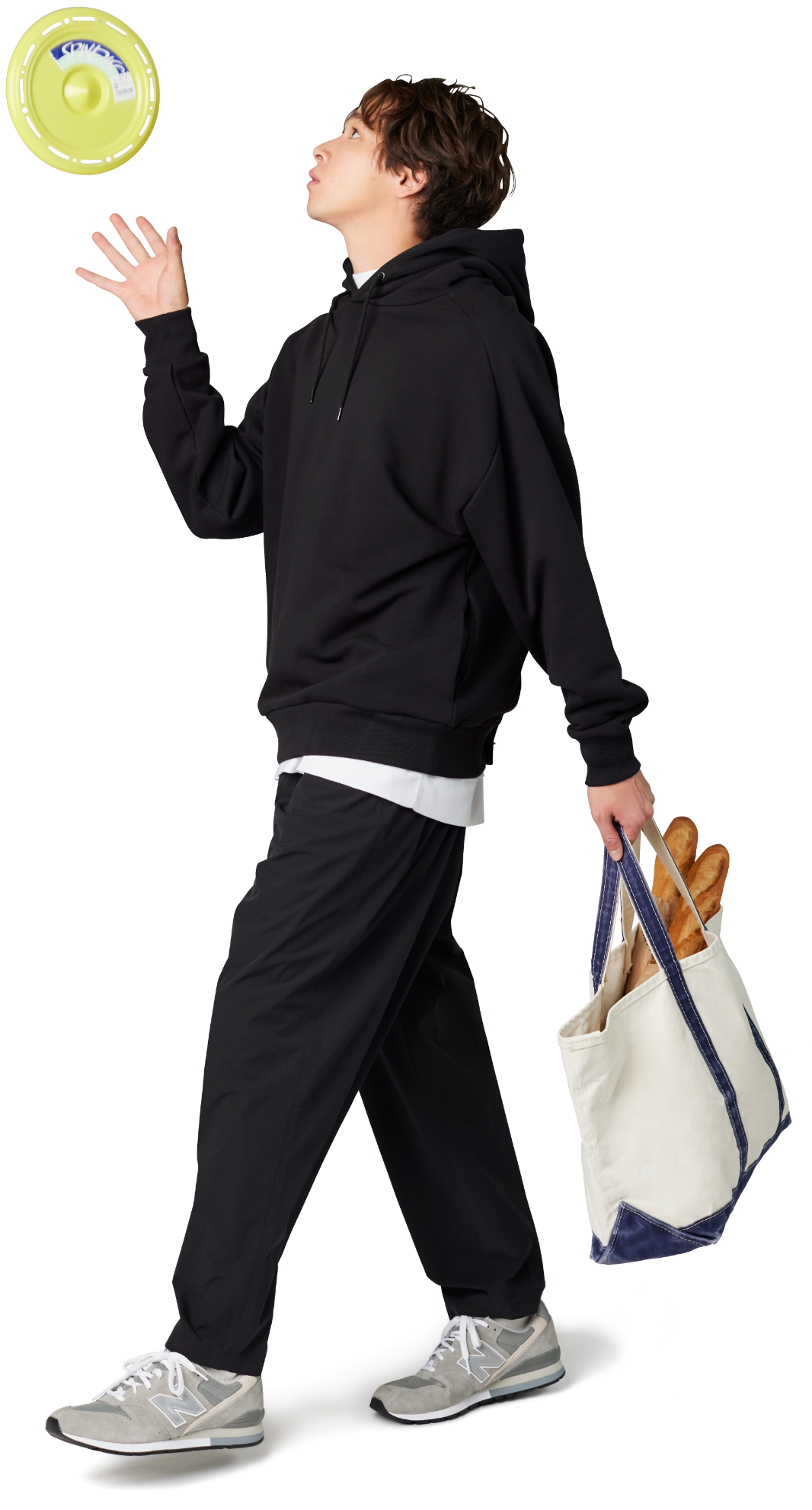 劣化しづらいポリエステルヤーン糸を使用した、軽やかな着心地と高い耐久性が特徴。形状を維持する機能を持ち、驚きの軽さと柔らかな風合いをキープ。