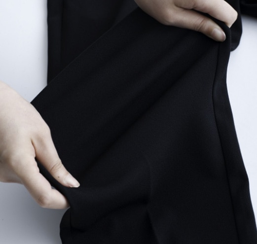 シワになりにくいジョーゼットのジャージー素材。洗濯機で洗えます。