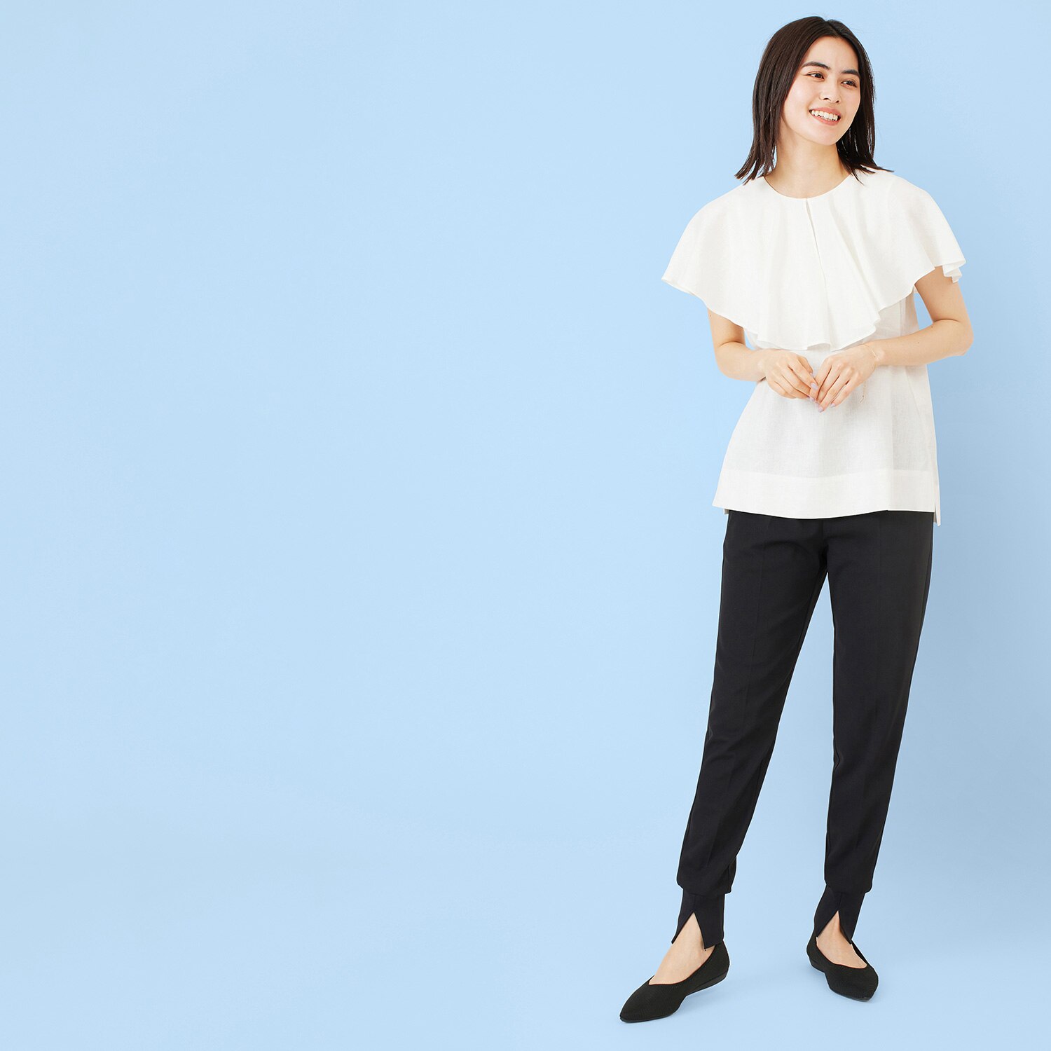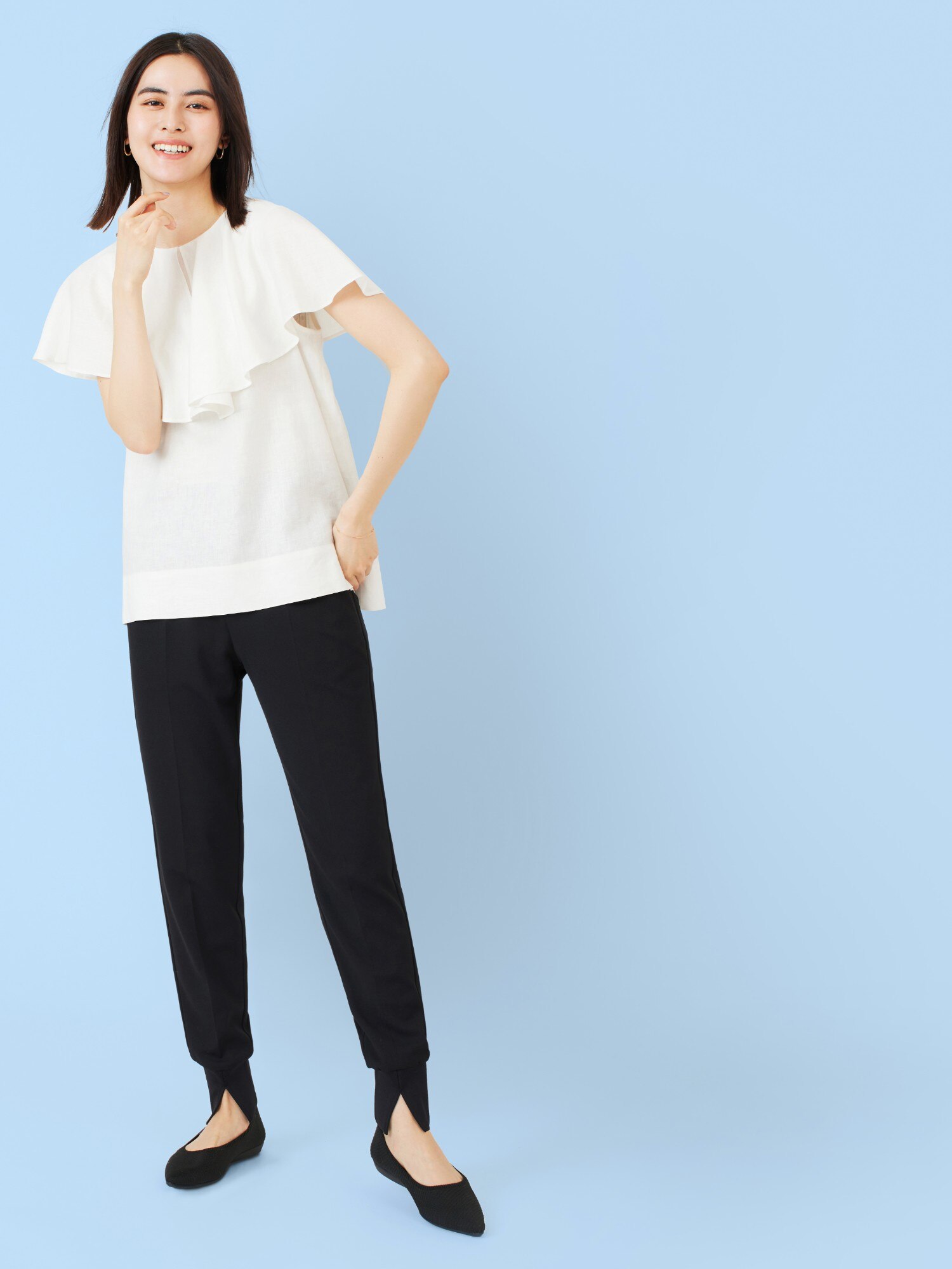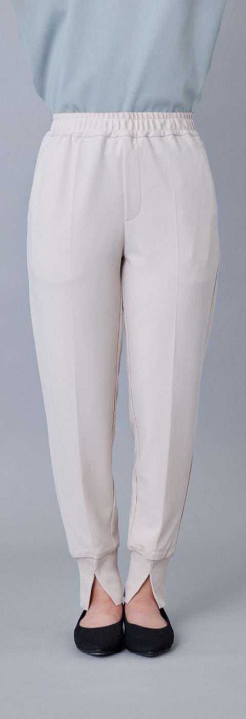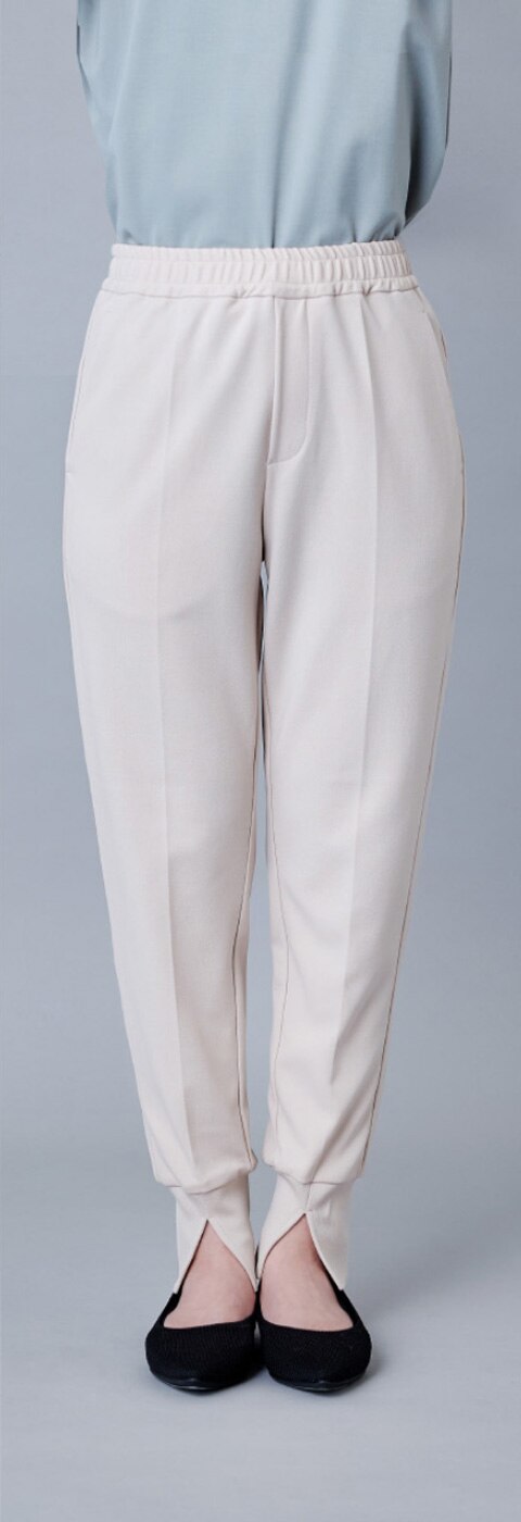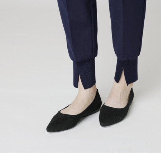 足首をリブでキュッと締めつつ、前スリットで肌を見せてすっきりと。