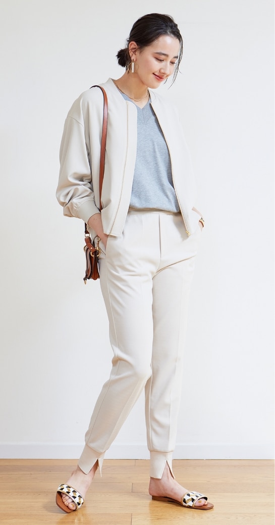 選ぶカラーや合わせるアイテム次第で、コーデの表情が変わるUNFILOのジョグパン。