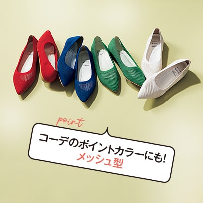 通気性良く蒸れを気にせず着用できるメッシュデザインは素足の季節に大活躍。さし色として遊べる夏シーズンにふさわしいカラバリは要チェック! デビュー以来人気継続中のラインです。