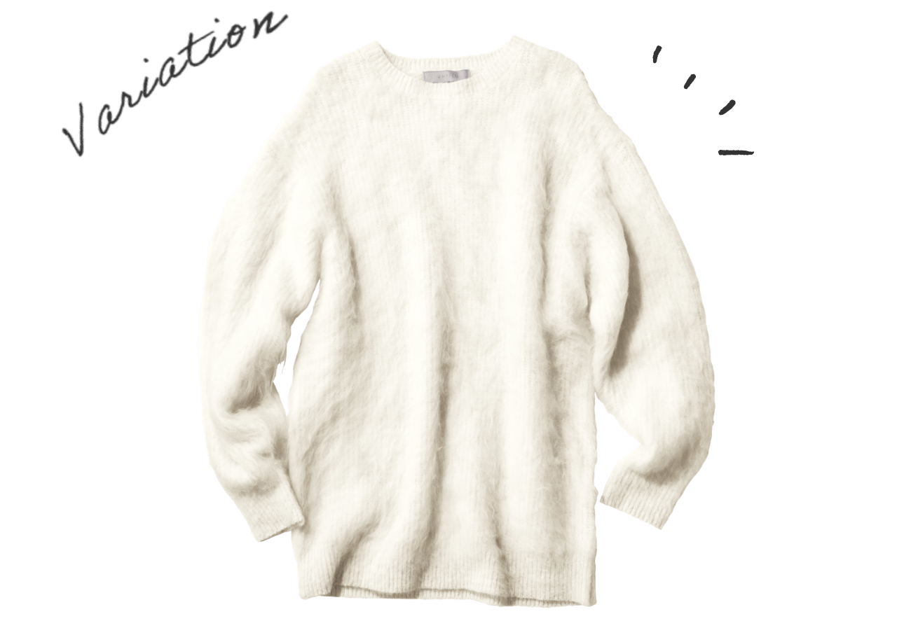 優しい風合いのアンゴラと弾力性のある糸をmixして編まれたニット。さらに起毛加工が施され、その手をかけた工程が、着心地優しいふわもちの秘密。今年らしい着こなしが楽しめる程よいクロップド丈がボトムスを選ばず幅広いシーンで活躍します。