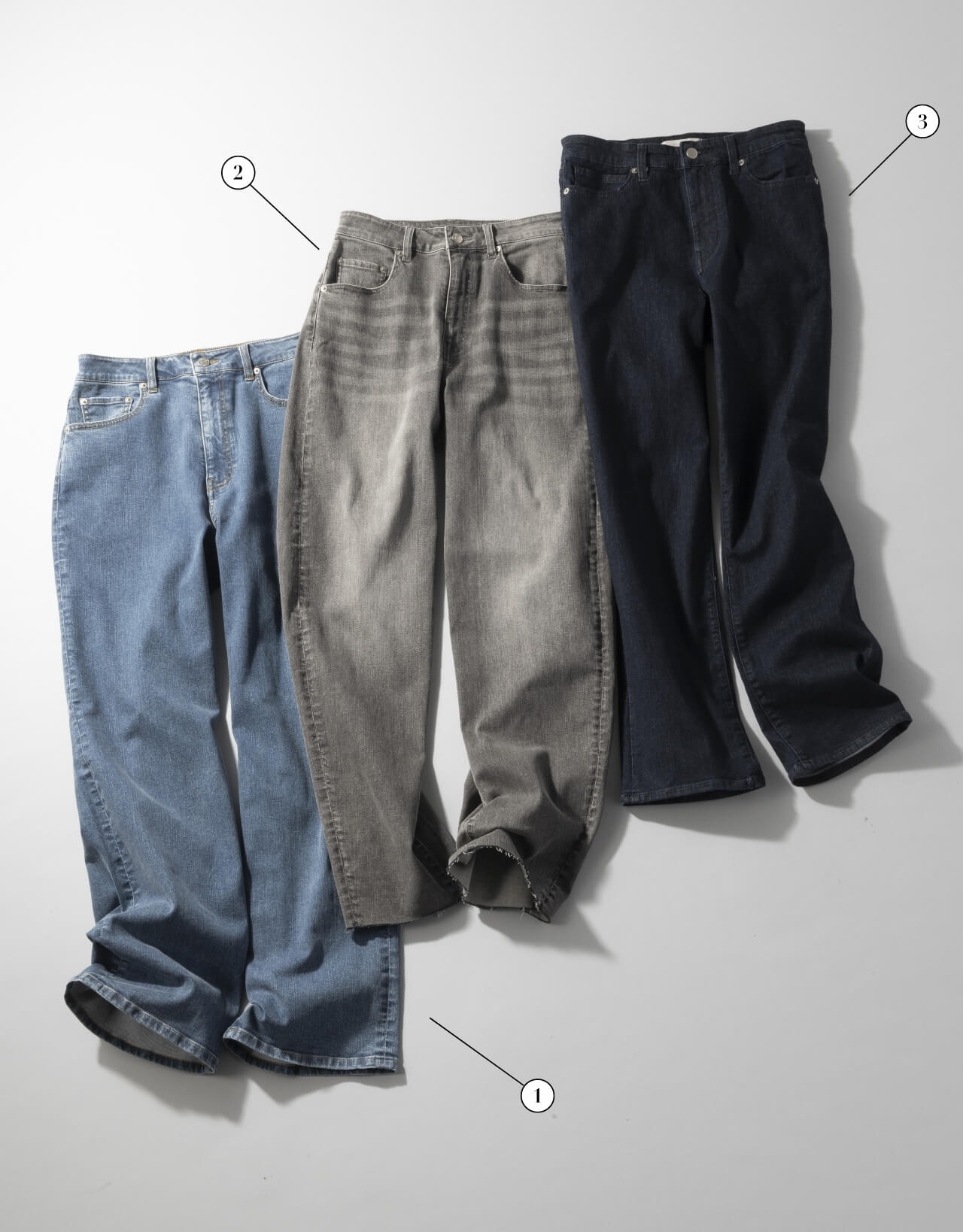はくだけで瞬時に今っぽさが出せる立体感のあるバレル。やんちゃすぎない品の良いカーヴィー感が大人にマッチ。こなれたグレーも、定番カラーも鮮度が欲しい時に頼れる存在。