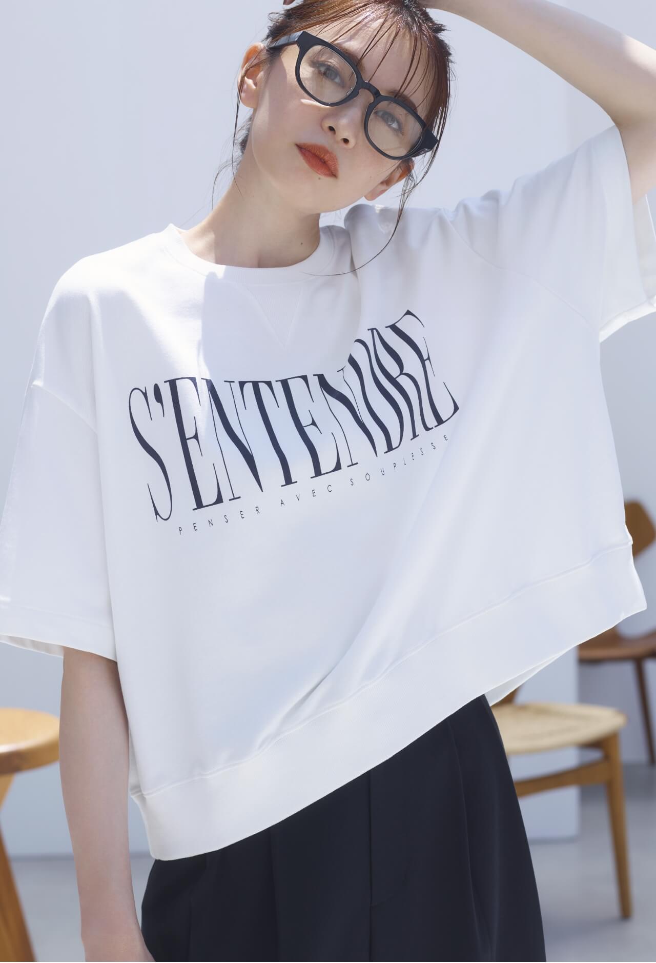 Tシャツ1枚では心もとなくなる晩夏はちょっぴり肉厚なスウェットにシフト。品のあるロゴデザインなので大人のカジュアルを楽しめます。幅広で体のラインが出ないのも安心です。忙しい朝でも考えずに着られ、ストレッチ素材でストレスフリー。