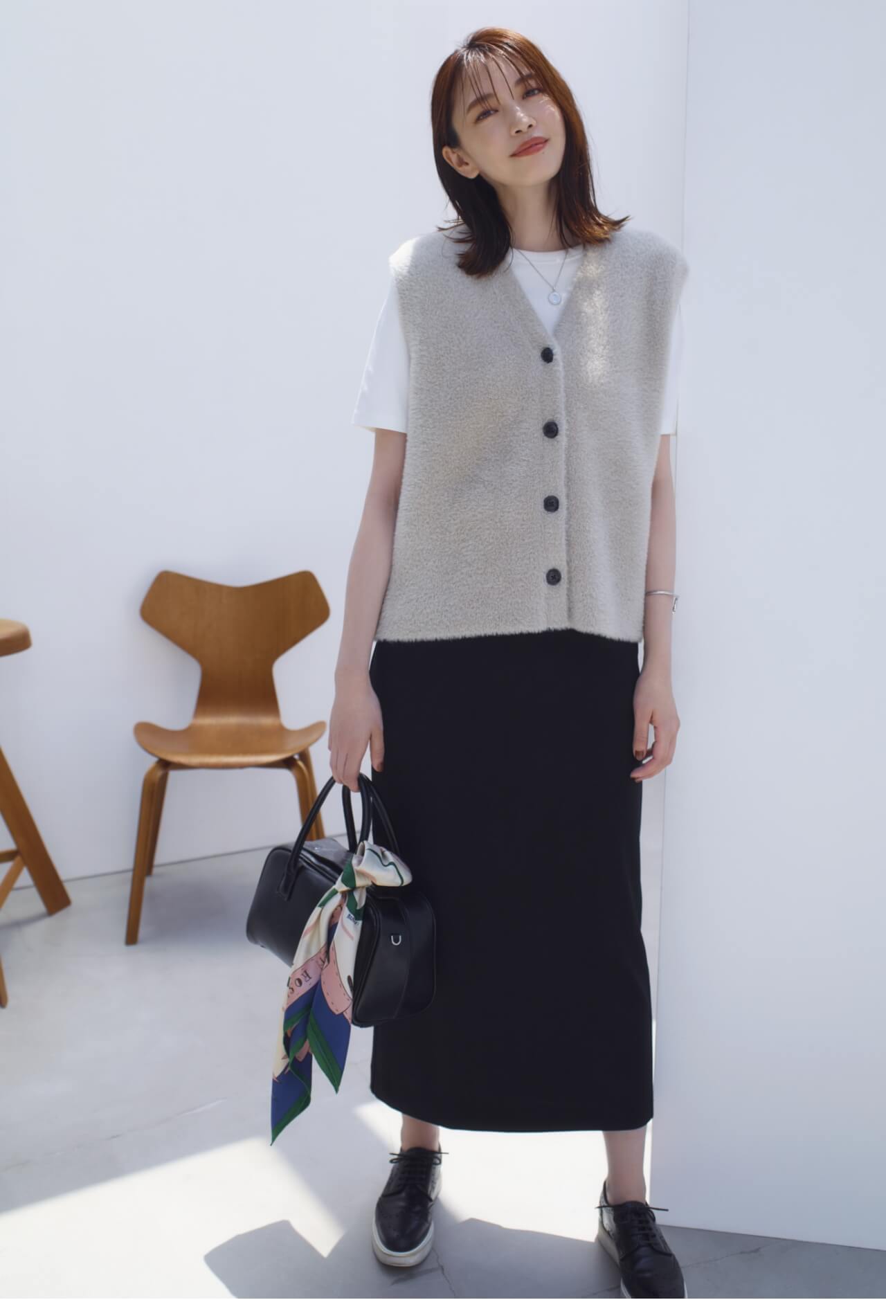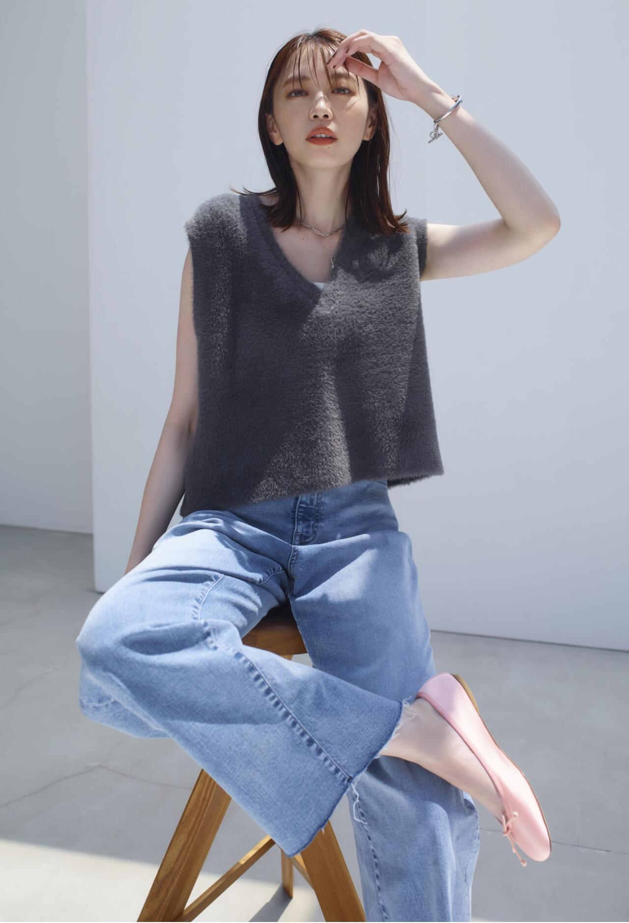 カーディガンベスト、クロップドベスト、ハーフスリーブなどデザインのバリエも豊富な華やかに映えるシャギーニット。レイヤード次第で冬まで楽しめます。