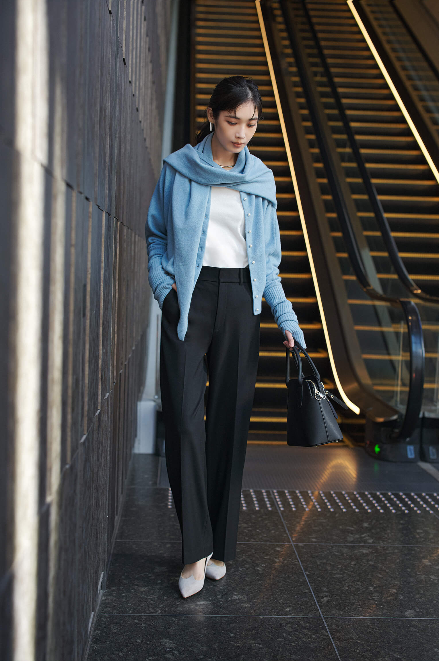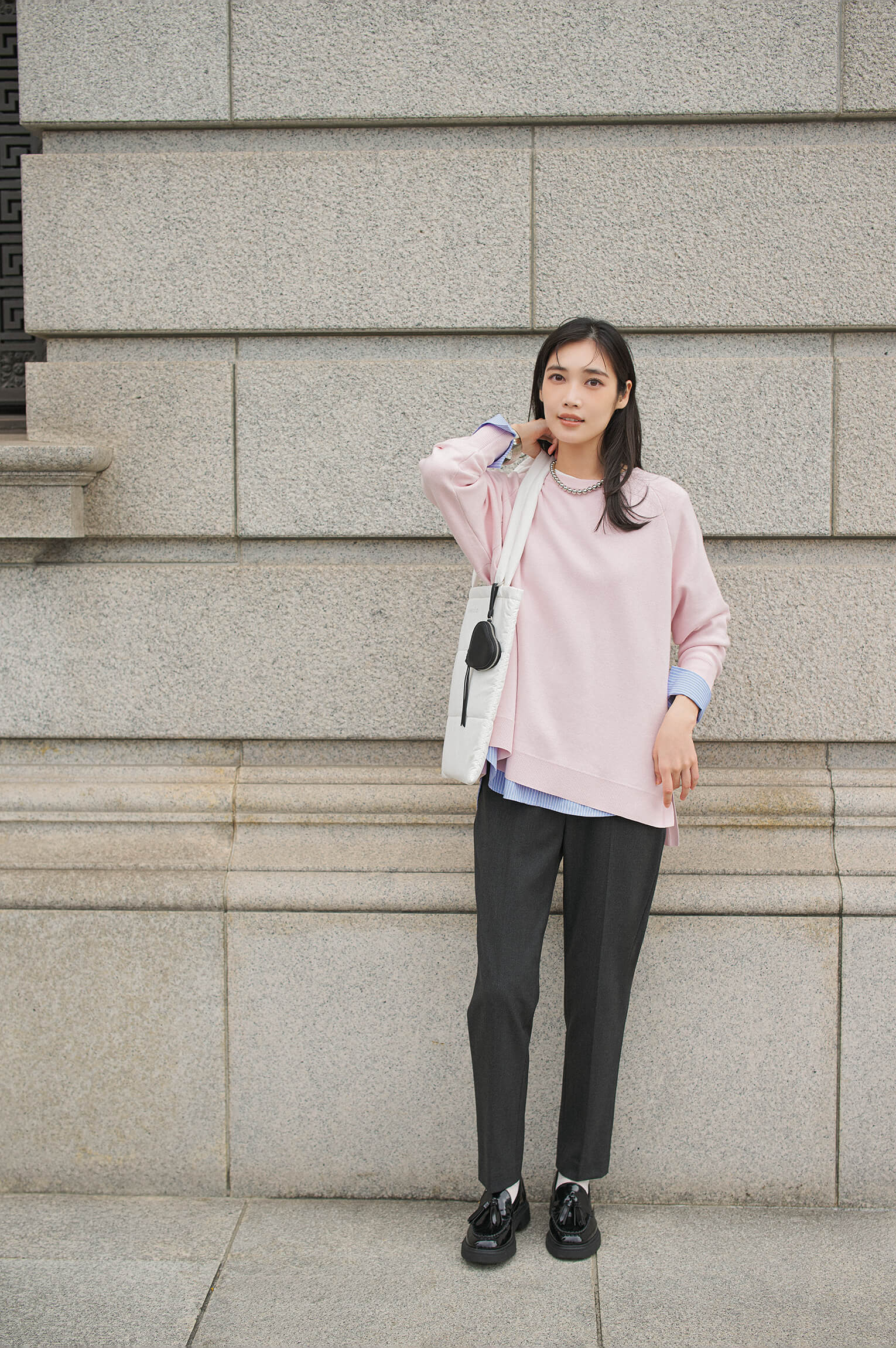 ブレンドした素材を採用。着回しやすい