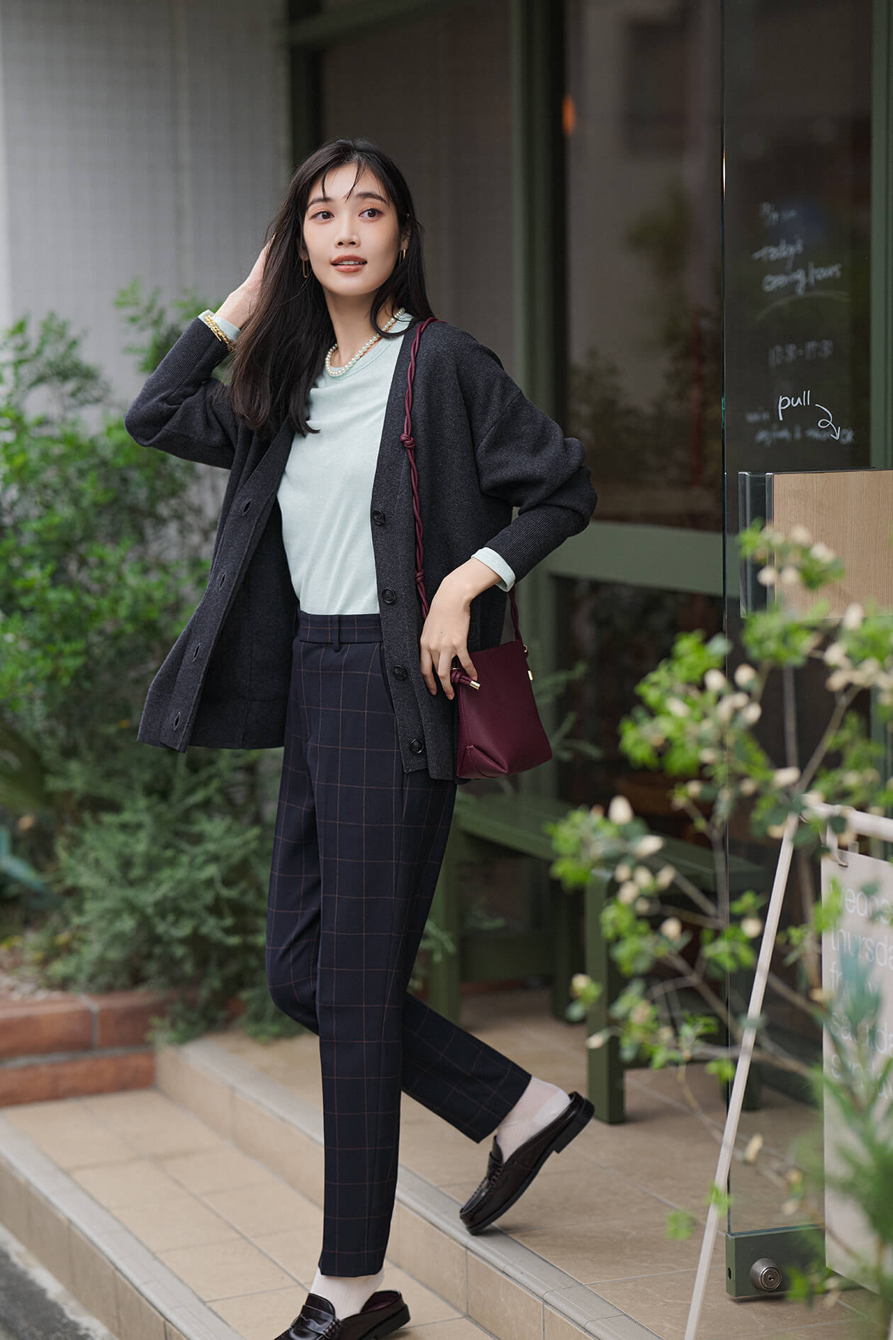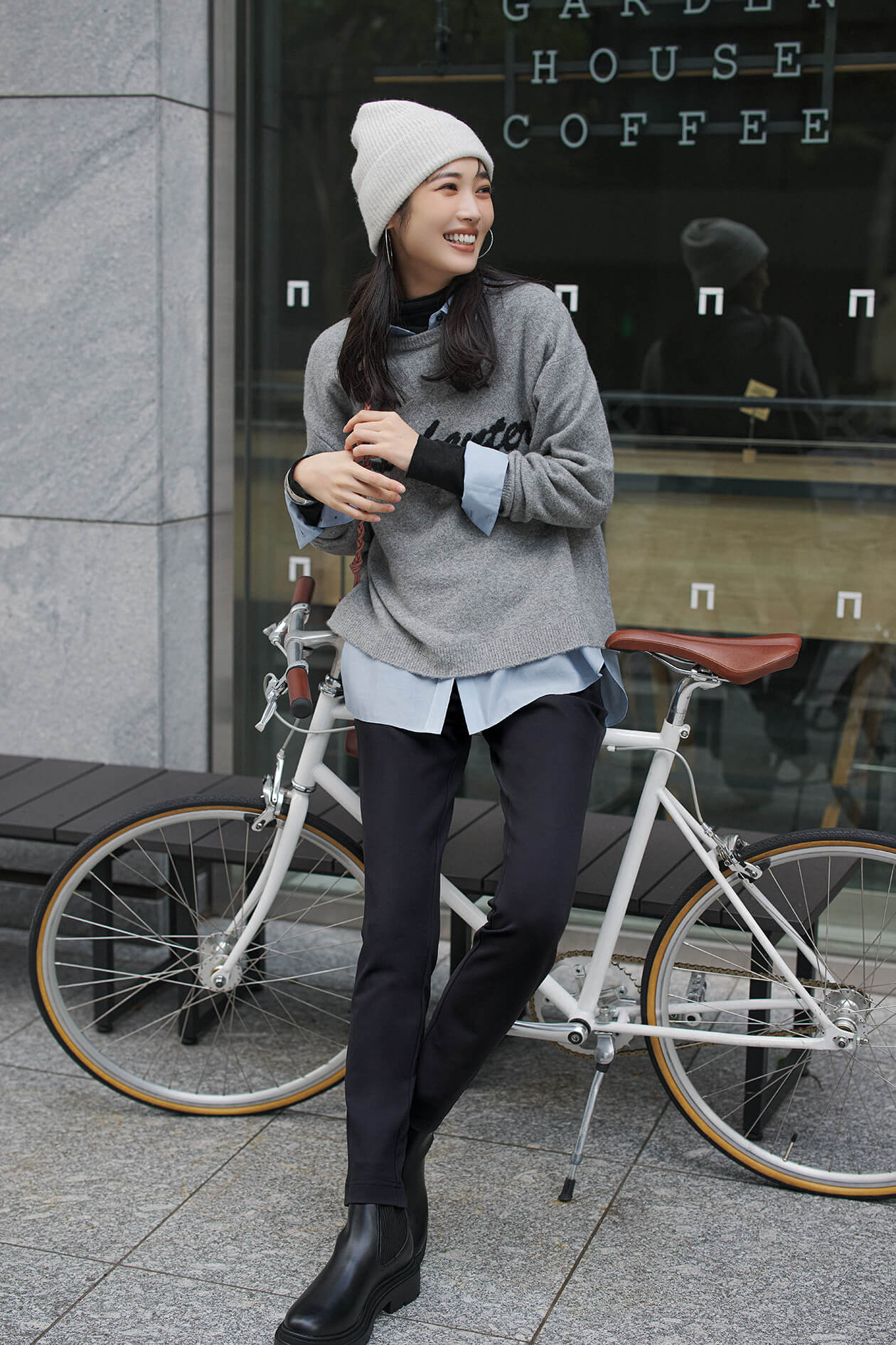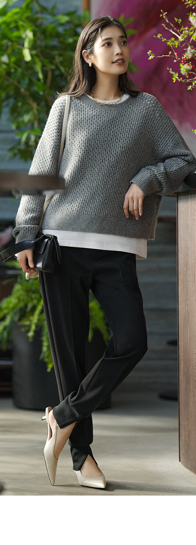 ニットとパンツをそのままワンツーコーデで