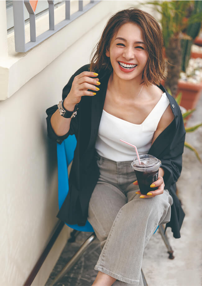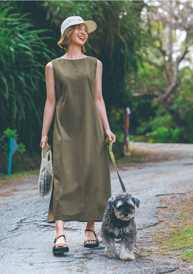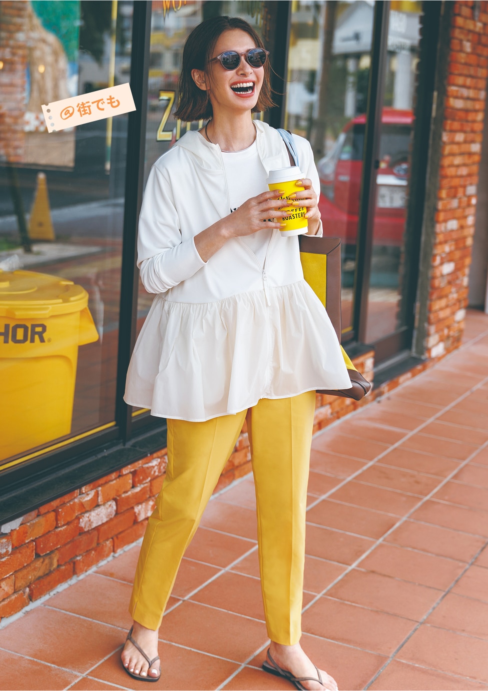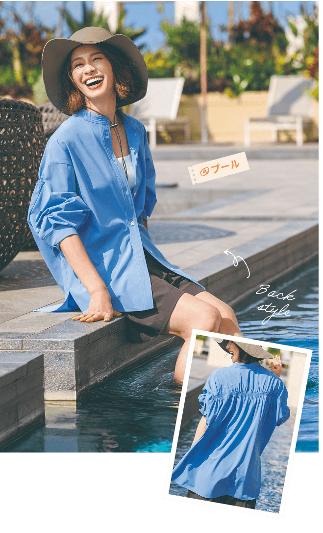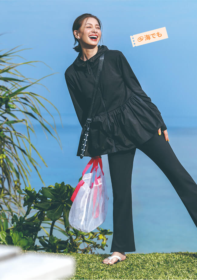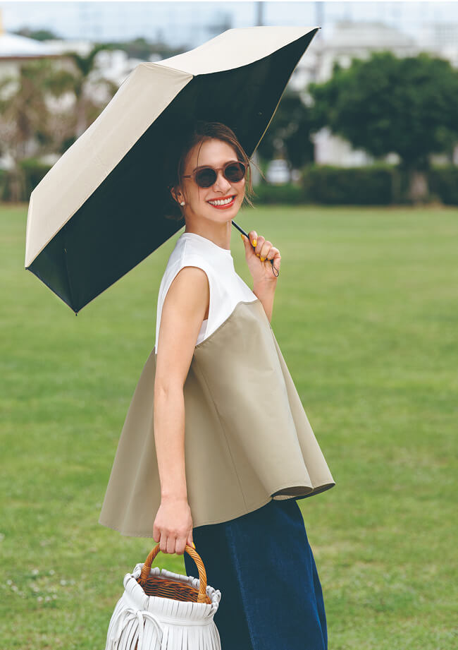 ドライタッチでUVカット素材のフレアパンツとあわせれば、全身UVカットが叶います。