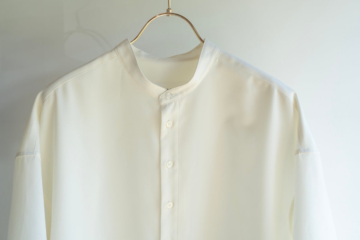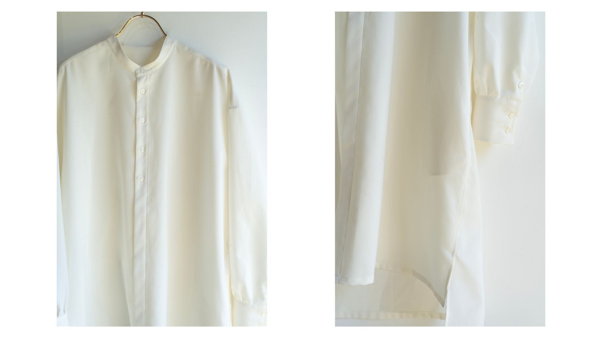 無駄を削ぎ落としたミニマルなフォルムに、スタンドカラーの凛とした佇まい。一枚羽織るだけで、知的さと大人の余裕、清潔感を演出します。