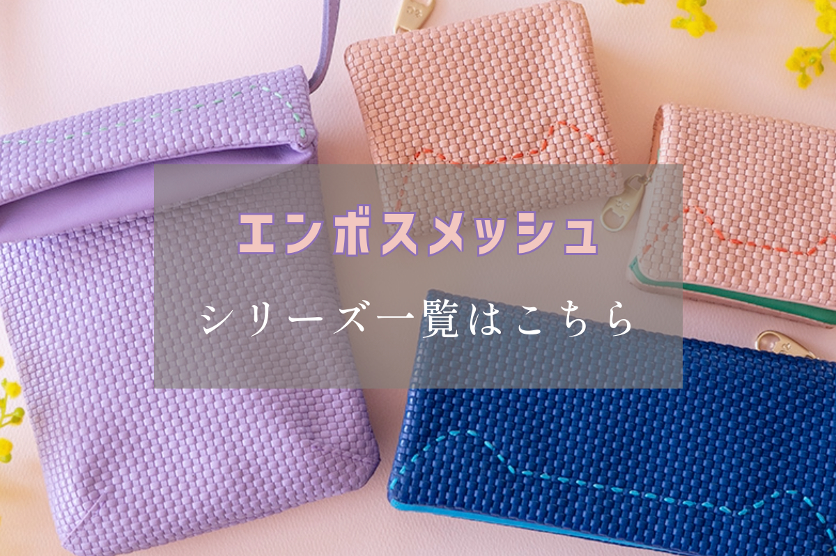 展開は2つ折り財布2種、長財布、ミニバッグの4型。それぞれピンク、ネイビー、ラベンダーの3色展開になります。