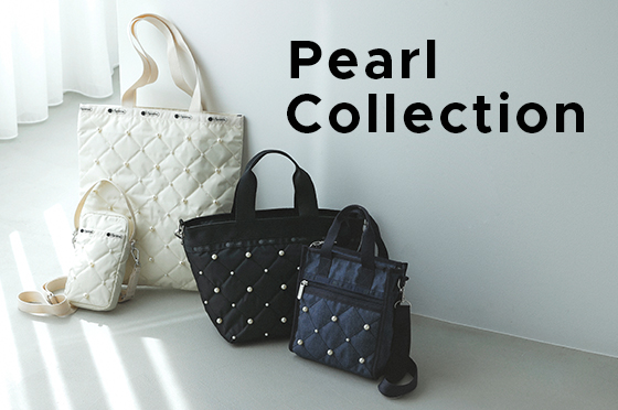 キルティング生地に大小のパールを散りばめたパールコレクション。