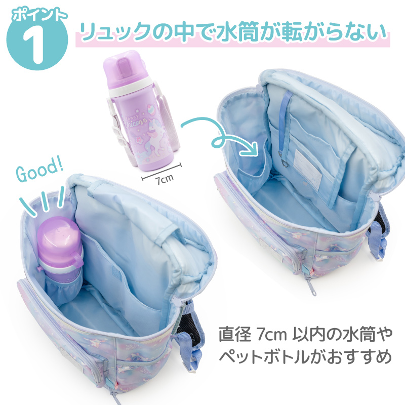 ・リュックの中に水筒やペットボトルを立てて収納可能