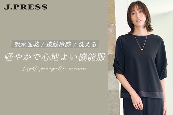 J.PRESS LADIES 【洗える・吸水速乾・接触冷感・セットアップ対応】Light ジョーゼット ブラウス ブラック系