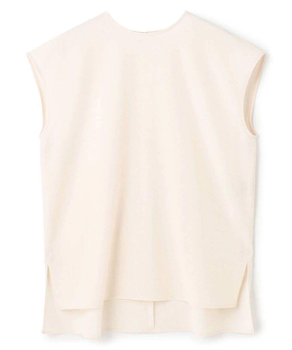ミニマルなデザインのノースリーブブラウス。サイドにスリットを深く入れ、着丈に前後差も付けているので、アウトでも前だけインでもこなれた印象になります。背中にサイドタックを入れることで、バックスタイルも抜かりなく。シワが気になりづらく、洗濯機で洗えるイージーケア素材なので、デイリーに着回ししやすくTシャツ感覚でご着用いただける一枚です。