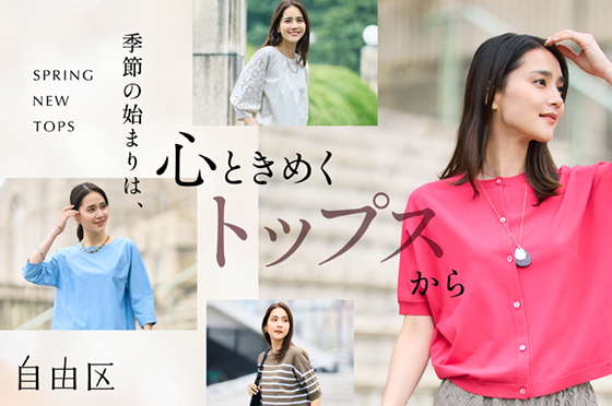 “Be happy”For the smile of contemporary woman.―すべての女性の笑顔のために―自由区は大人世代の女性に向けた自然体で輝くワードローブを提案します。