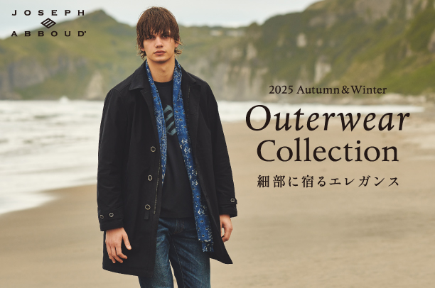 JOSEPH ABBOUDオリジナルのインターレースポリエステル糸を使用しています。この特殊な糸は、糸同士を交絡させることで周期的に節のように細く固められており、形状記憶性を持っています。ジャガード組織で表現された上品な表情が魅力で、軽量でありながら、優れた撥水性と防風性を兼ね備えた快適素材です。