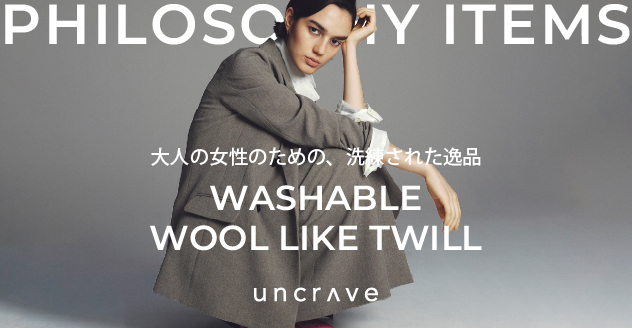 むやみに欲しがらない="uncrave"な大人が、「これさえあればいいと思える服」をコンセプトに、本物志向のテーラリングと素材感にこだわった、新しいバランスのベーシックを展開。 ”ほどよいトレンド”を加えた様々なアイテムの組み合わせによる新たなセットアップを提案しています。