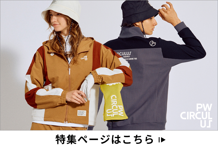 「POP&WIT&YOU」アスリートが着る様なスポーツウェアではハードルが高くて、カジュアルウェアでは面白くない。そんなファッションに敏感なゴルファーに気取らず、自分らしく、少し個性的なスタイルを。PW CIRCULUSのデザインは、コースの緑や眩しい太陽の光の中で鮮やかに映えるポップなカラーリングとスタイリッシュなロゴワーク、思わず微笑んでしまう様なウィット感やユーモラスさをグラフィックで表現しています。