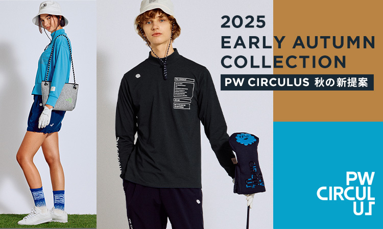 「POP&WIT&YOU」アスリートが着る様なスポーツウェアではハードルが高くて、カジュアルウェアでは面白くない。そんなファッションに敏感なゴルファーに気取らず、自分らしく、少し個性的なスタイルを。PW CIRCULUSのデザインは、コースの緑や眩しい太陽の光の中で鮮やかに映えるポップなカラーリングとスタイリッシュなロゴワーク、思わず微笑んでしまう様なウィット感やユーモラスさをグラフィックで表現しています。