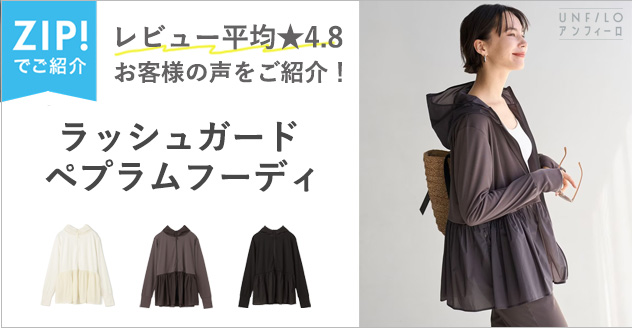 UNFILO L 【ZIP!放映】ラッシュガード ペプラムフーディ オフ