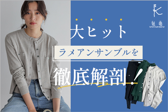 クラシックなアイテムと思われがちなアンサンブルニットを今年らしくアップデートしたアイテムです。