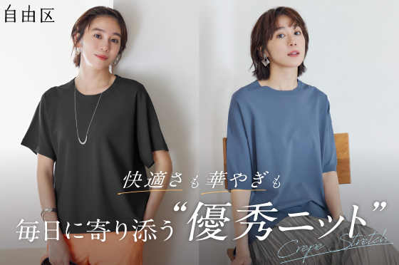 接触冷感・UVカット機能付き!女性らしいTシャツライクニット