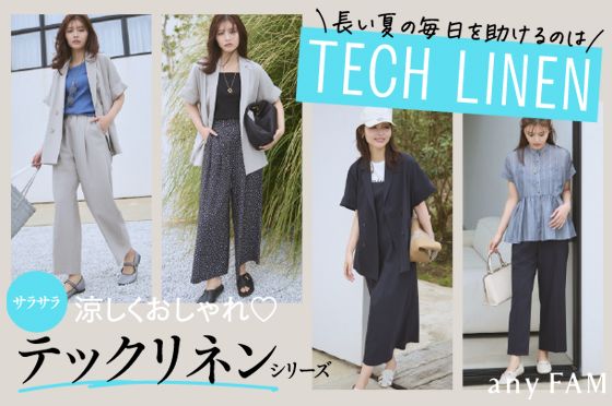 ・同素材のサラサラテックリネン半袖テーラードジャケット(JKFBGM0601)とのセットアップコーデがおすすめ
