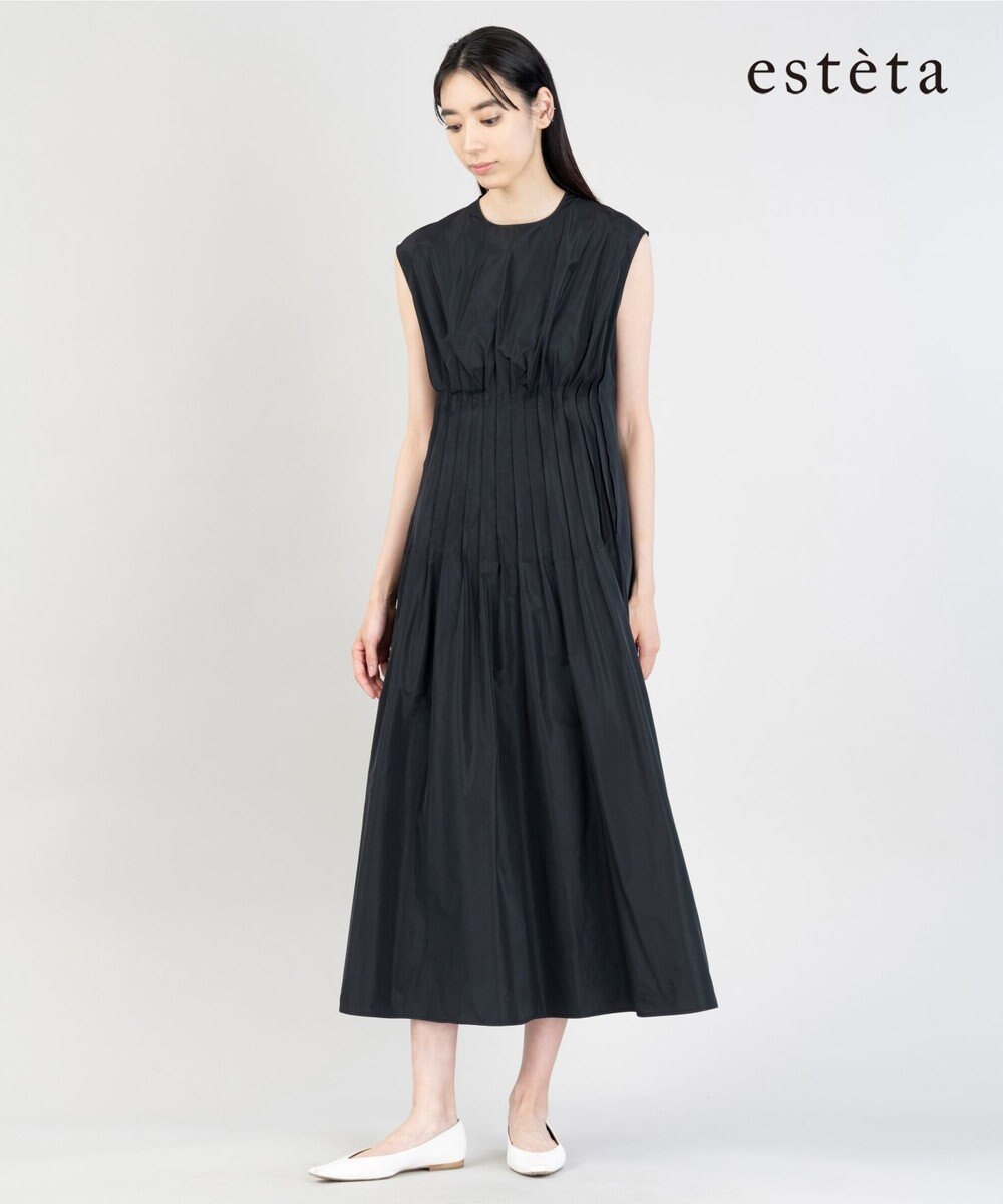【エステータ】シャイニータフタ ピンタック ワンピース