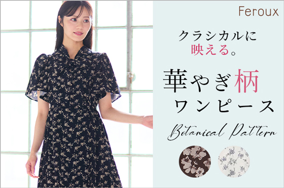#フェルゥ #feroux #レディース #フェミニン #ラッフル襟ワンピース #フラワープリントワンピース