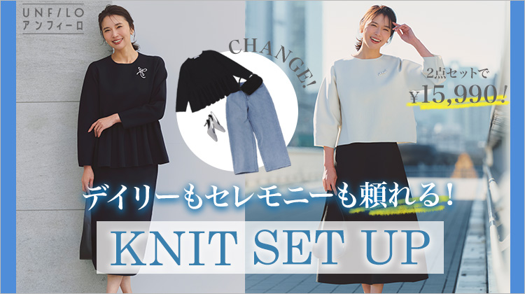 UNFILO BEAUTY FORM KNIT フレアスカート セットアップ ネイビー