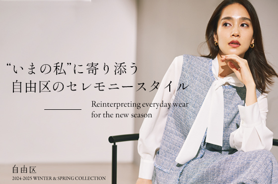 “Be happy”For the smile of contemporary woman.―すべての女性の笑顔のために―自由区は大人世代の女性に向けた自然体で輝くワードローブを提案します。