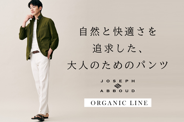 JOSEPH ABBOUDの「自然との共存」というテーマに基づき、環境に配慮したオーガニックコットンを使用。肌に優しく、地球にも配慮した素材選びです。