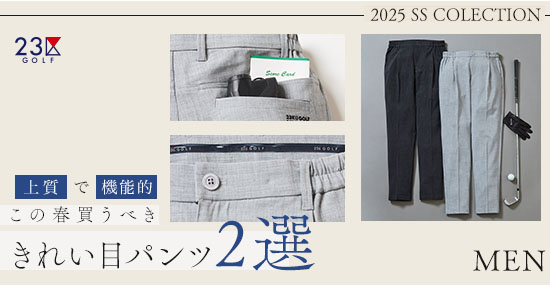 脚先に向かって緩やかに細くなるテーパードシルエットが、美しいラインを演出するゴルフパンツ。スラックスのようなシンプルかつ洗練されたデザインで、コースはもちろん、タウンユースとしても活躍する一着です。