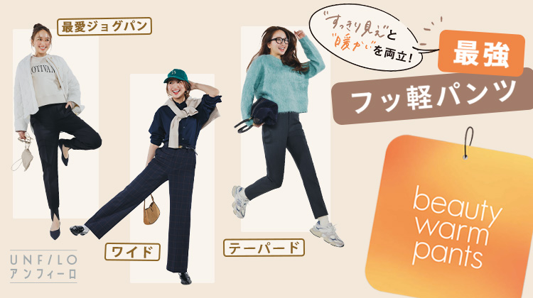 UNFILO 【ウエストゴム/14サイズ展開】beauty warm pants ワイド オフ