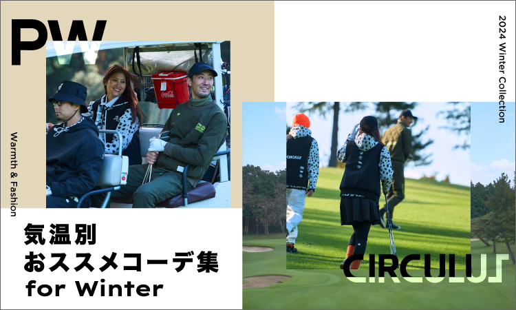 「POP&WIT&YOU」アスリートが着る様なスポーツウェアではハードルが高くて、カジュアルウェアでは面白くない。そんなファッションに敏感なゴルファーに気取らず、自分らしく、少し個性的なスタイルを。PW CIRCULUSのデザインは、コースの緑や眩しい太陽の光の中で鮮やかに映えるポップなカラーリングとスタイリッシュなロゴワーク、思わず微笑んでしまう様なウィット感やユーモラスさをグラフィックで表現しています。