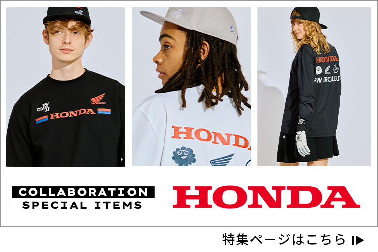 日本が世界に誇る世界的輸送機器メーカーである本田技研工業とのコラボウェア!フロントには【Honda】のロゴマークや、【Wing】マークが入っておりHonda好きの方には垂涎のデザインに。