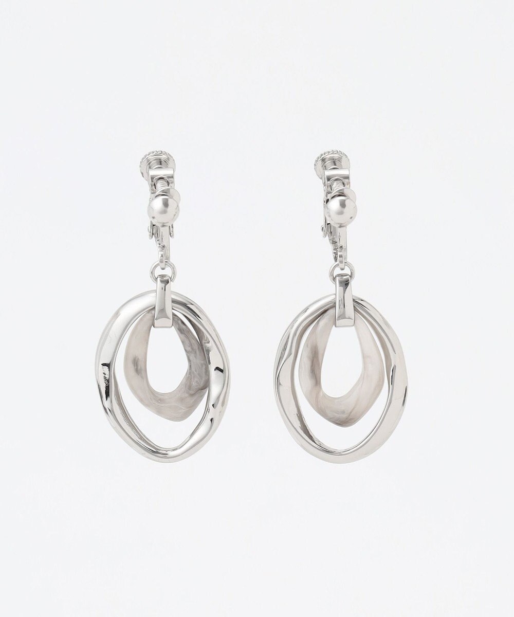 ANY SIS マーブルメタル イヤリング シルバー×アイボリー