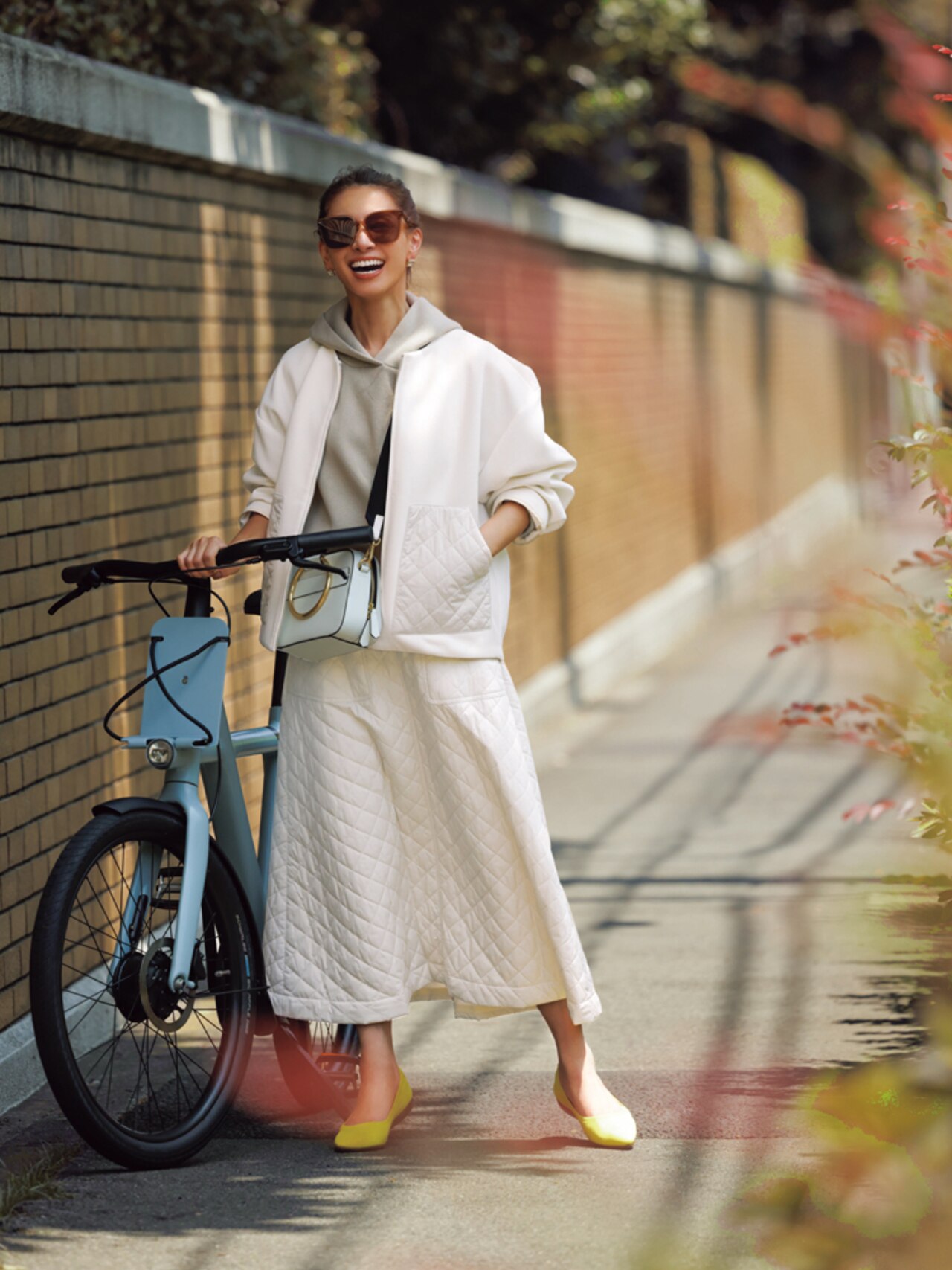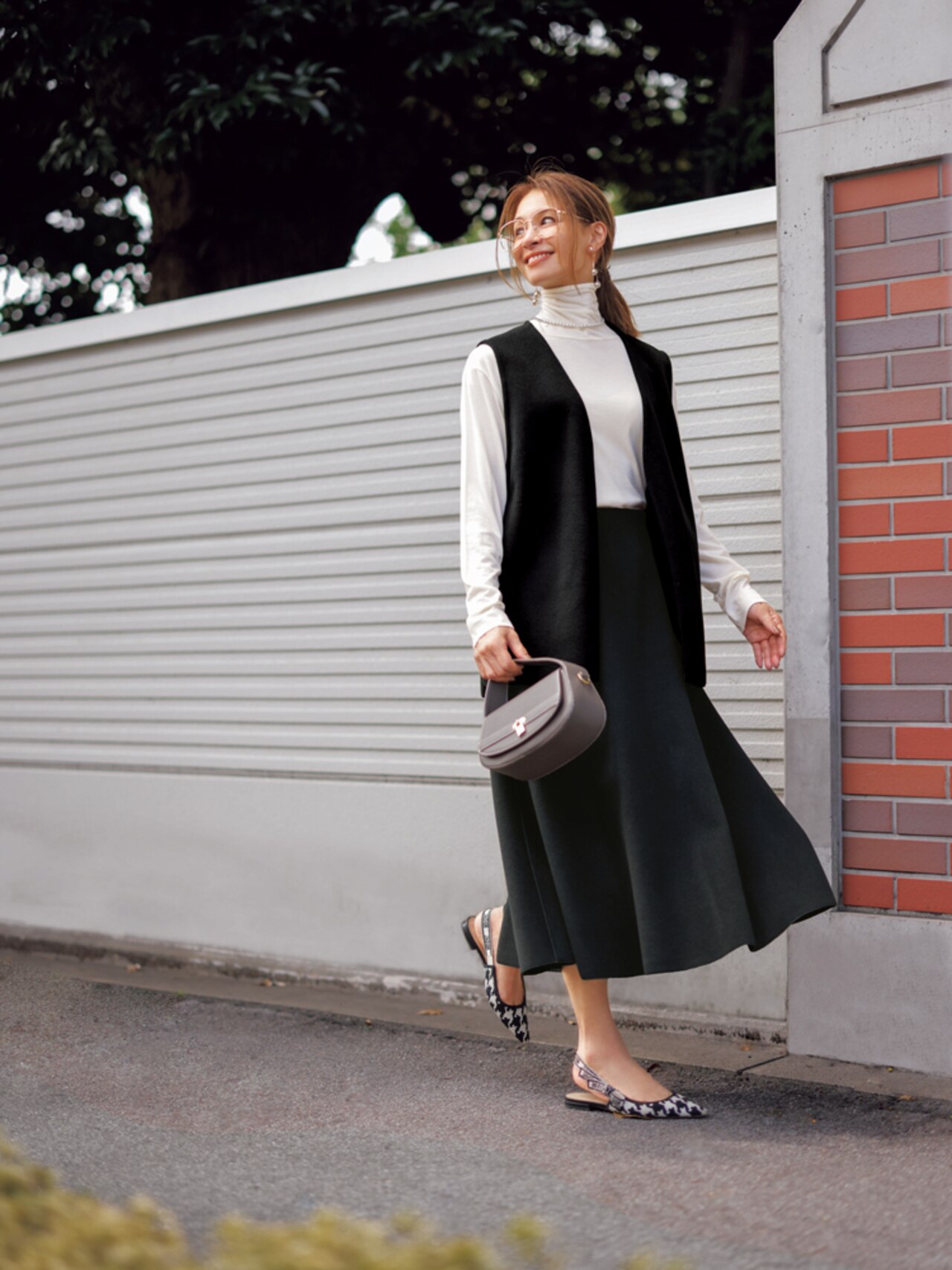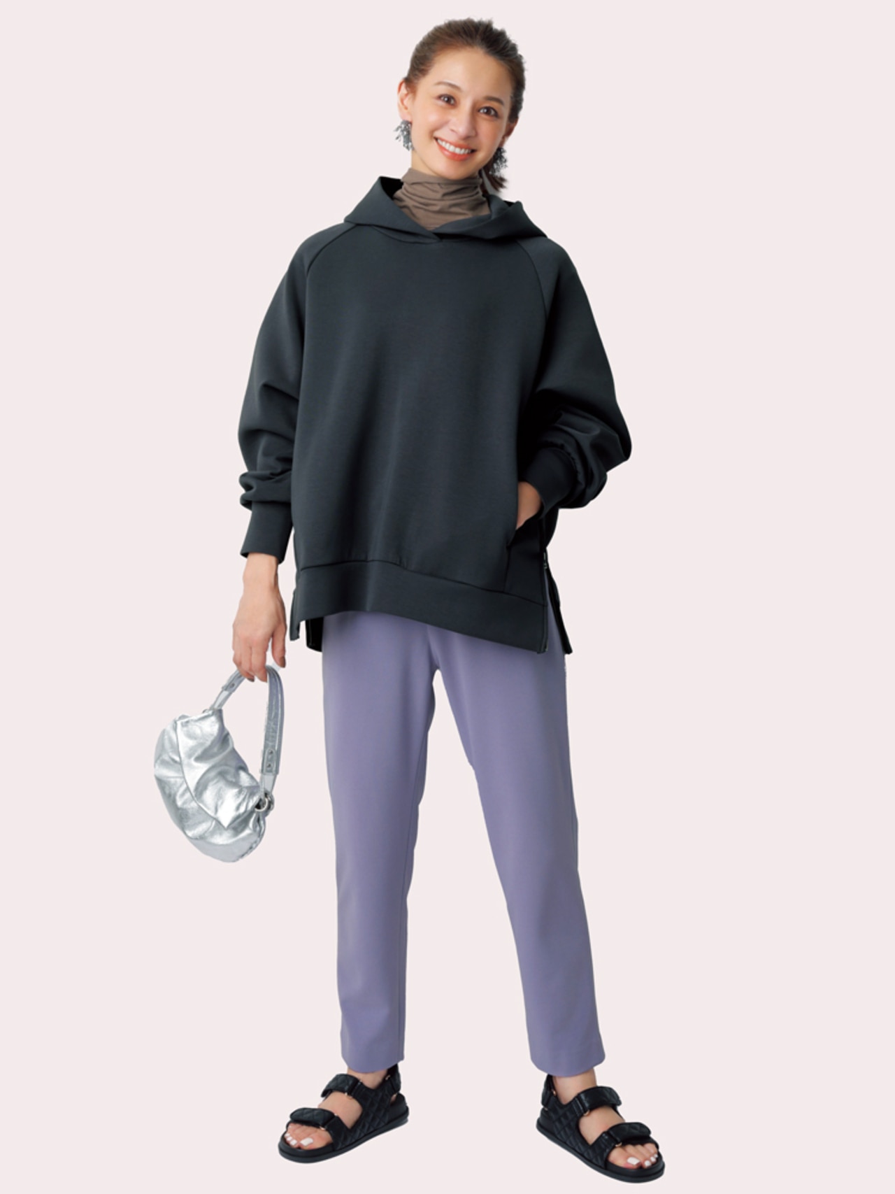 スタイルアップはもちろん、イージーケアで機能性にも優れているからどんな天候の日も、予定もHAPPYに過ごせる。