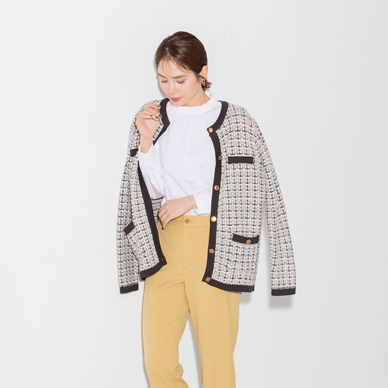 ジャケットのように着用いただける様、袖幅や身幅のサイズ感に程よいゆとりをもたせ、身体に張り付きにくいシルエットに。上品な金ボタンがアクセントになっています。3色の糸を編み込んだニット特有の表面感あるツイード調のジャケットです。ニットの為、程良く伸び堅苦しさも無く着用出来ます。少しゆったりとしたサイズ感でなのでTシャツやブラウスはもちろん、厚手のカットソーとの合わせも可能です。【洗える】ツイーディニットジャケット【洗える】ツイーディニットジャケットany FAM¥6,999(税込)→¥4,899(税込)LサイズLサイズany FAM L¥6,999(税込)→¥4,899(税込) -