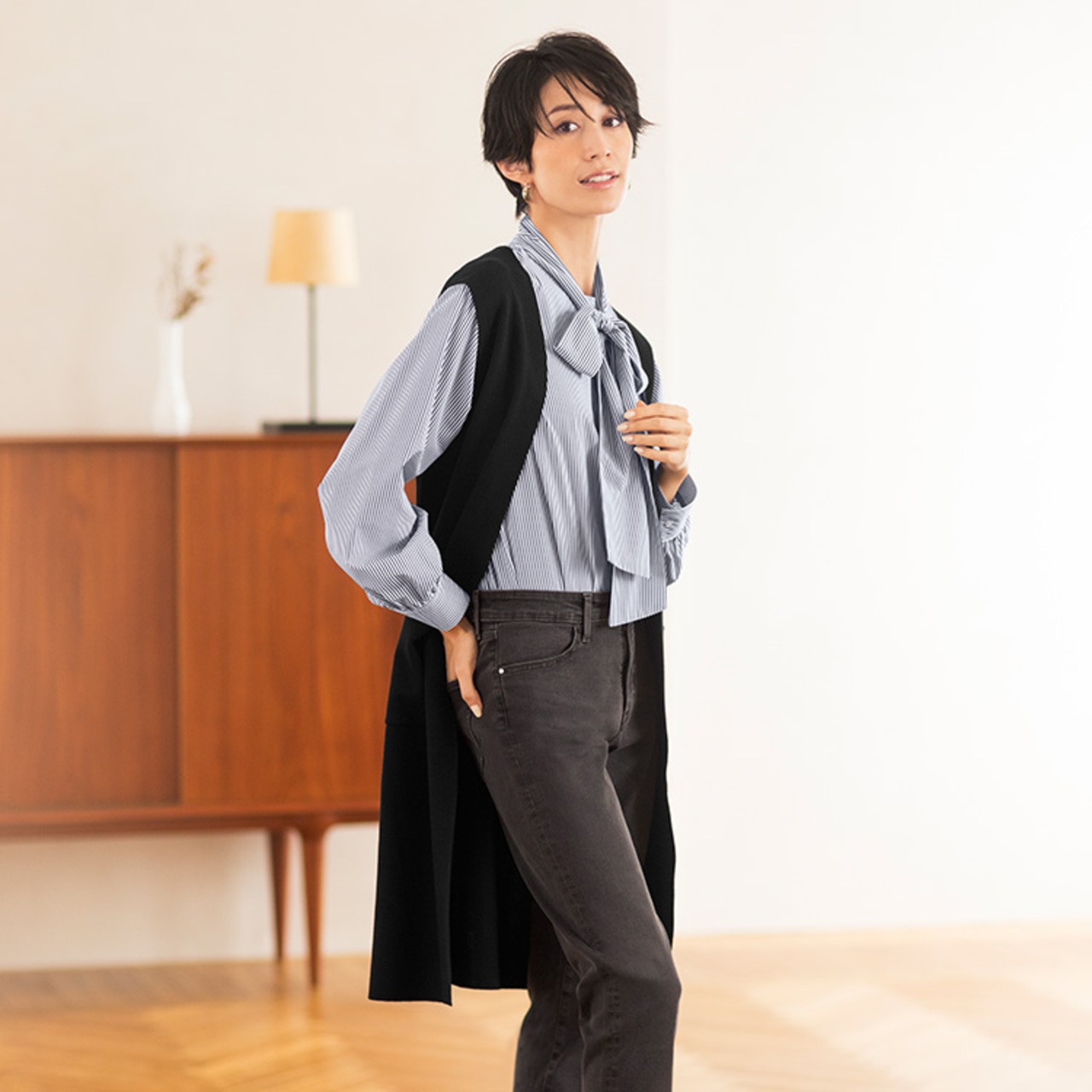 トレンドのニットジレ。シンプルなTシャツやブラウスの上に羽織るだけで、一気にこなれた印象になれるアイテム。共糸のベルト付きで、後ろでベルトを結ぶことでウエストラインをシャープに見せることも可能です。シャツブラウスやカットソーと合わせて、前を開けて着ることで、縦のラインが強調されスタイル良く見せてくれます。シンプルなのでコーディネートに取り入れやすく、マンネリしがちなコーディネートを格上げしてくれます。【洗濯機可】マシュマロニットジレ【洗濯機可】マシュマロニットジレany FAM¥4,999(税込)→¥3,499(税込)LサイズLサイズany FAM L¥4,999(税込)→¥3,499(税込)