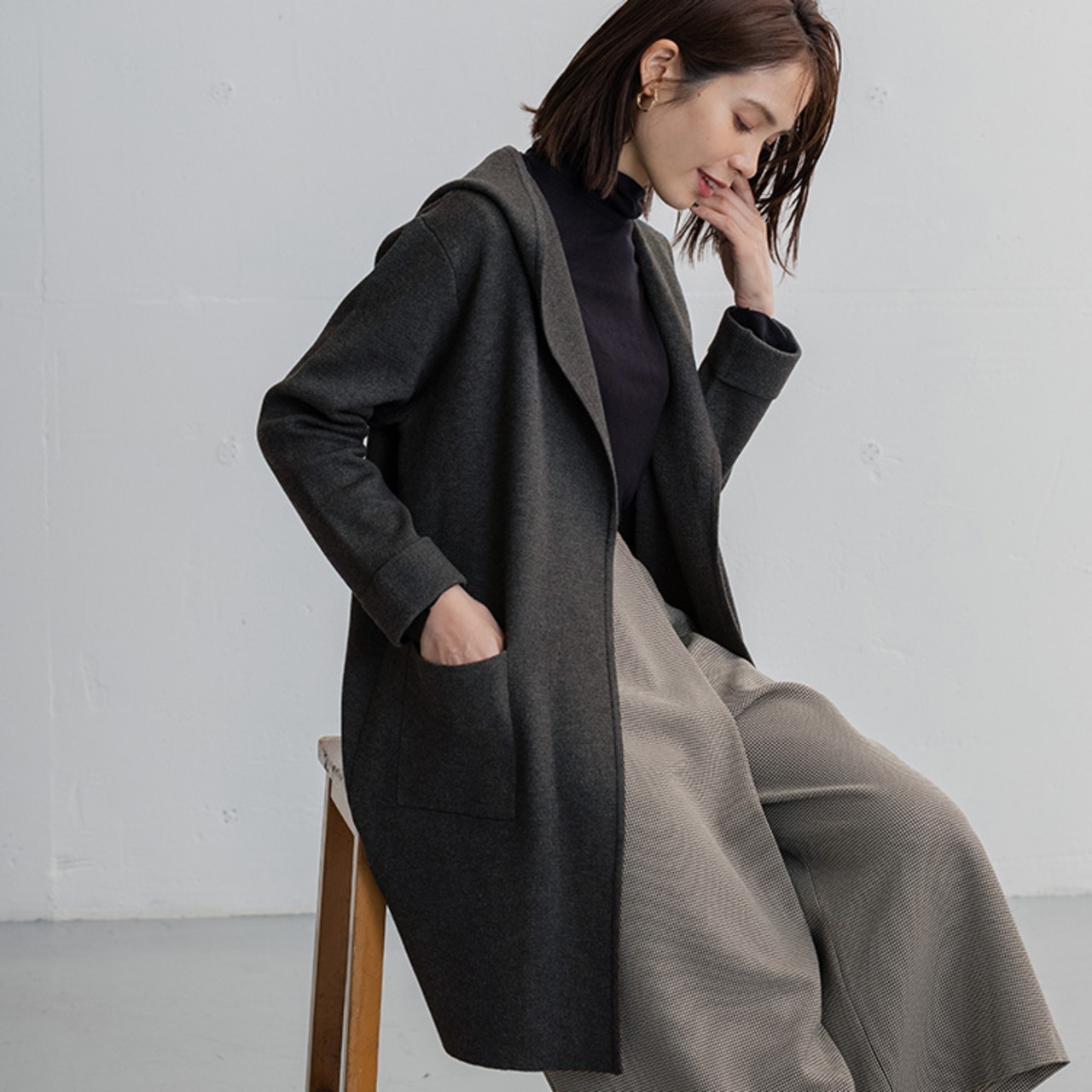 長く活躍するフード付きの万能コーディガン。コートほど重たくなくさらっと羽織れてカーディガンよりも厚手の生地は朝晩が寒くて何着ようか迷う時期にもぴったりのアイテムです。ストレッチ性に富んでおり、動きやすく通勤着にもママさんにもおすすめです。コーディネートに取り入れやすい、落ち着きのあるカラーリングも魅力です。シンプルなデザインなのでどんなコーディネートにも合わせやすく、カジュアルな着こなしにもきれいめな着こなしにもハマります。素材はコートインとしても着用可能な柔らかさと、程よい肉感が特徴です。シンプルなデザインなのでどんなコーディネートにも合わせやすく、ニットコートですがご家庭でのお洗濯が可能です。【洗える】フード付きニットコーディガン【洗える】フード付きニットコーディガンany FAM¥5,999(税込)→¥4,198(税込)LサイズLサイズany FAM L¥5,999(税込)→¥4,198(税込)
