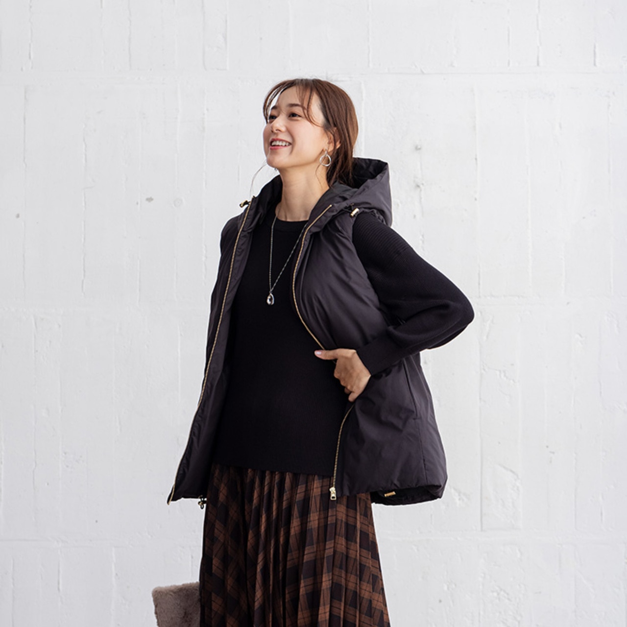 シンプルなデザインが特徴のベスト。インナーやボトムを選ばないシンプルなデザインなので、着回し力抜群です。きれいめコーデの外しに使うなど、ひねりの効いた着こなしにもおすすめ。カラー展開は秋カラーのライトベージュ、モカに加えて、コーディネートを選ばないブラックの三色展開になります。テイジンのミノテックという開発素材を使用しています。ミノテックの特徴は、日本の雨蓑から発想された、生地の表面を水が転がり落ちるという、特殊な構造で撥水効果があります。中綿には、東レのエコユースを使用しています。エコユースは、中空糸で軽量、嵩高性にも優れた、地球に優しいリサイクル素材です。【撥水/洗える】ミノテックベスト【撥水/洗える】ミノテックベストany FAM¥11,900(税込)→¥5,949(税込)LサイズLサイズany FAM L¥11,900(税込)→¥5,949(税込)