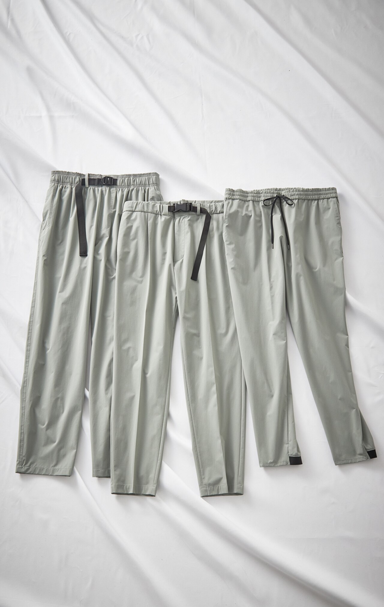 機能性素材「MOVETECH(ムーブテック)」は、ポリエステルの高伸縮機能糸を使用し、優れたストレッチ性と耐久性を実現。天然素材の表情で、高い柔軟性と柔らかい風合いが特長です。ウエスト4サイズ×レングス2タイプの8サイズ展開で自分にピッタリのサイズが見つかります。テーパード、ワイド、ジョグとシーンに応じた3タイプのデザインを展開します。ブラックとカーキの2色展開です。