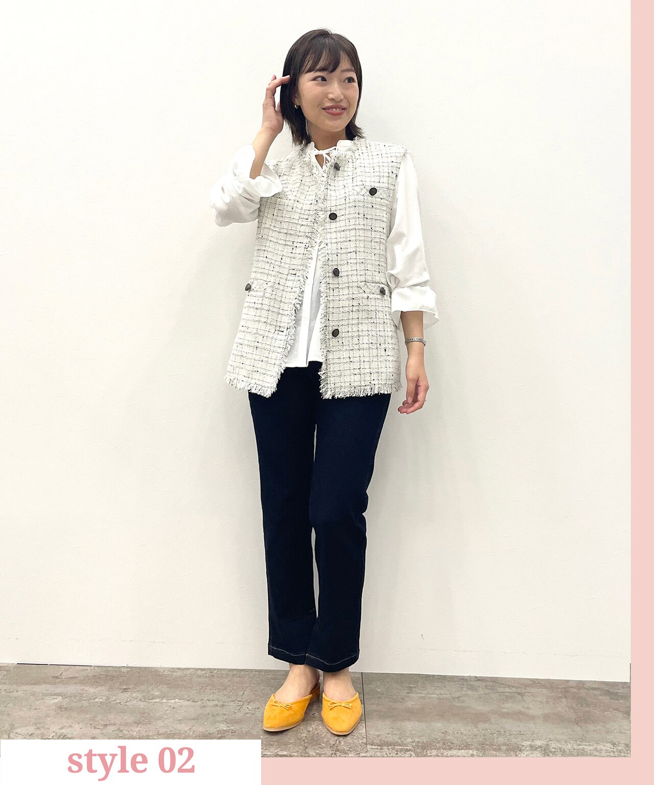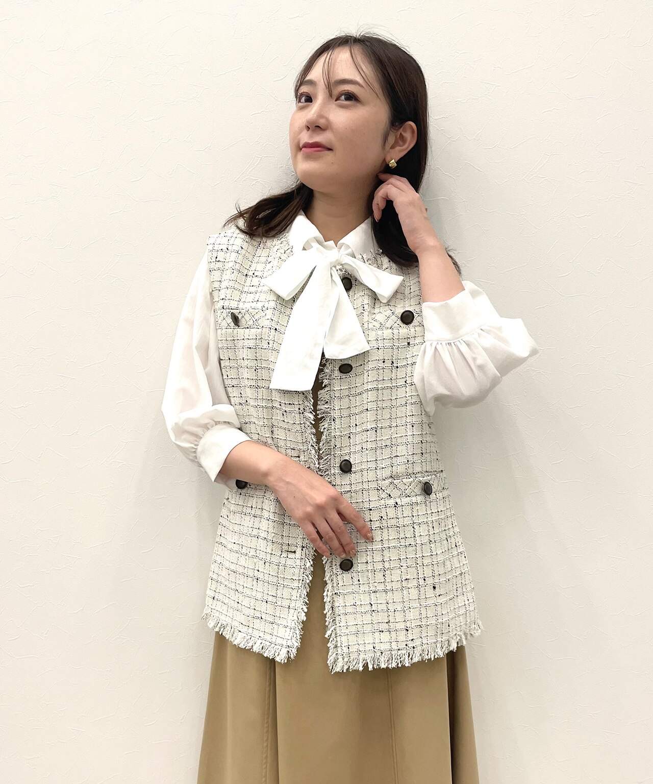 Ferouxおすすめの2つのジレをスタッフが着回します。