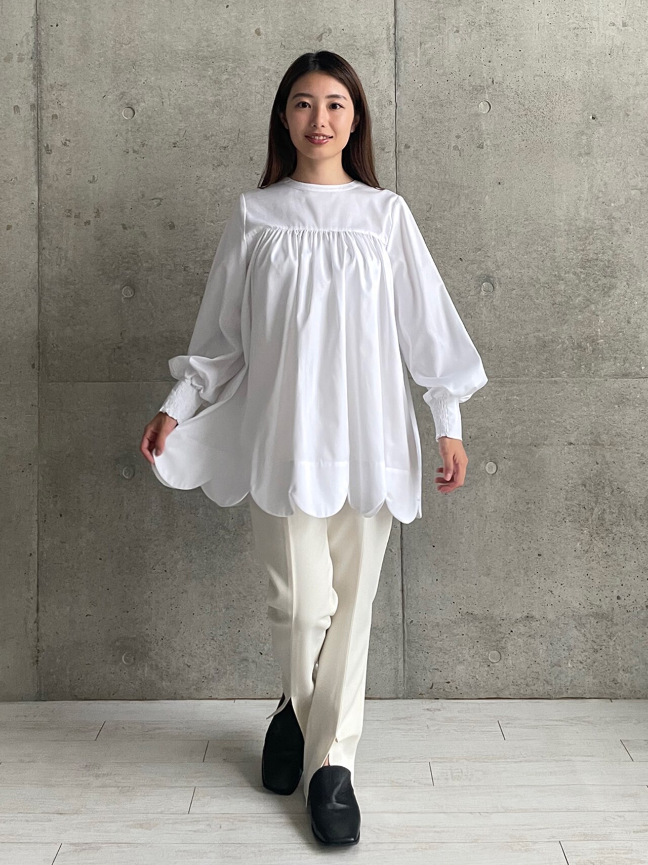 Scallop Hem Tunic Blouse